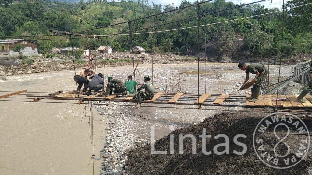 Aceh Tengah, tniad.mil.id – Pembangunan jembatan gantung sepanjang 120 meter di Desa Burlah, wilayah teritorial Kodim 0106/Aceh Tengah, terus menunjukkan progres signifikan. Hingga Kamis (26/2/2026), capaian pekerjaan telah menembus 57,06 persen.