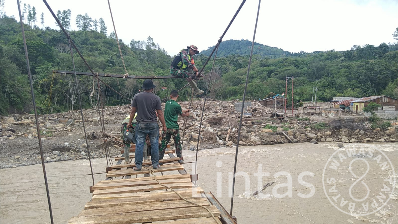 Kapten Inf Iwan Mulyawan menyampaikan bahwa progres pembangunan berjalan sesuai rencana dengan tetap mengedepankan kualitas dan faktor keamanan konstruksi. “Kami terus mengoptimalkan pekerjaan di lapangan agar pembangunan jembatan gantung ini dapat selesai tepat waktu dan segera dimanfaatkan oleh masyarakat. Sinergi seluruh personel menjadi kunci percepatan pembangunan,” ujarnya.