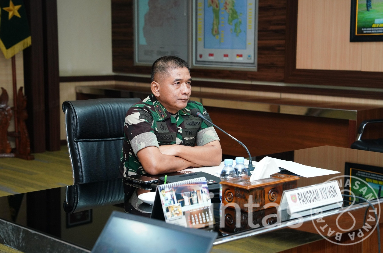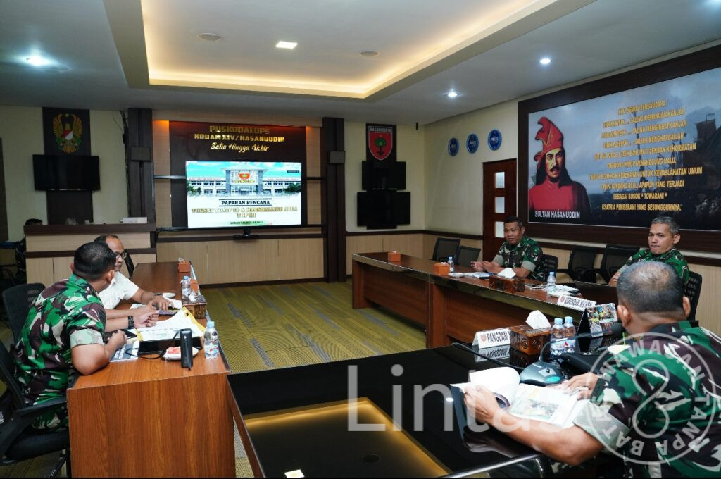 Makassar — Pangdam XIV/Hasanuddin Mayjen TNI Bangun Nawoko mengikuti kegiatan Video Conference (Vicon) dengan Wakil Kepala Staf Angkatan Darat (Wakasad) Letjen TNI Muhammad Saleh Mustafa, yang membahas kesiapan pengembangan gelar satuan Batalyon Infanteri Teritorial Pembangunan (Yonif TP) Tahun 2026 tahap III, bertempat di ruang vicon Puskodalops, Makodam, Jl. Urip Sumoharjo, Kota Makassar. Rabu, (24/12/2025).