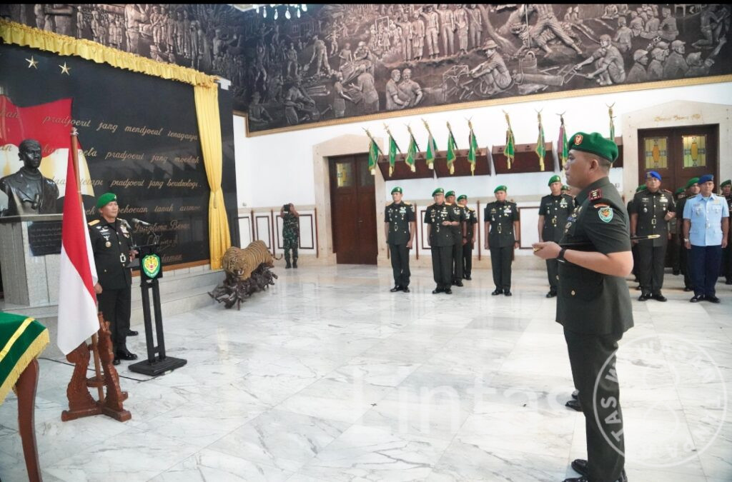 Bandung, – Pangdam III/Siliwangi Mayjen TNI Kosasih, S.E. memimpin Acara Tradisi dan Serah Terima Jabatan (Sertijab) Dandim 0618/Kota Bandung, yang dilaksanakan di Ruang Silihwangi, Makodam III/Siliwangi, Sabtu (01/11/2025).