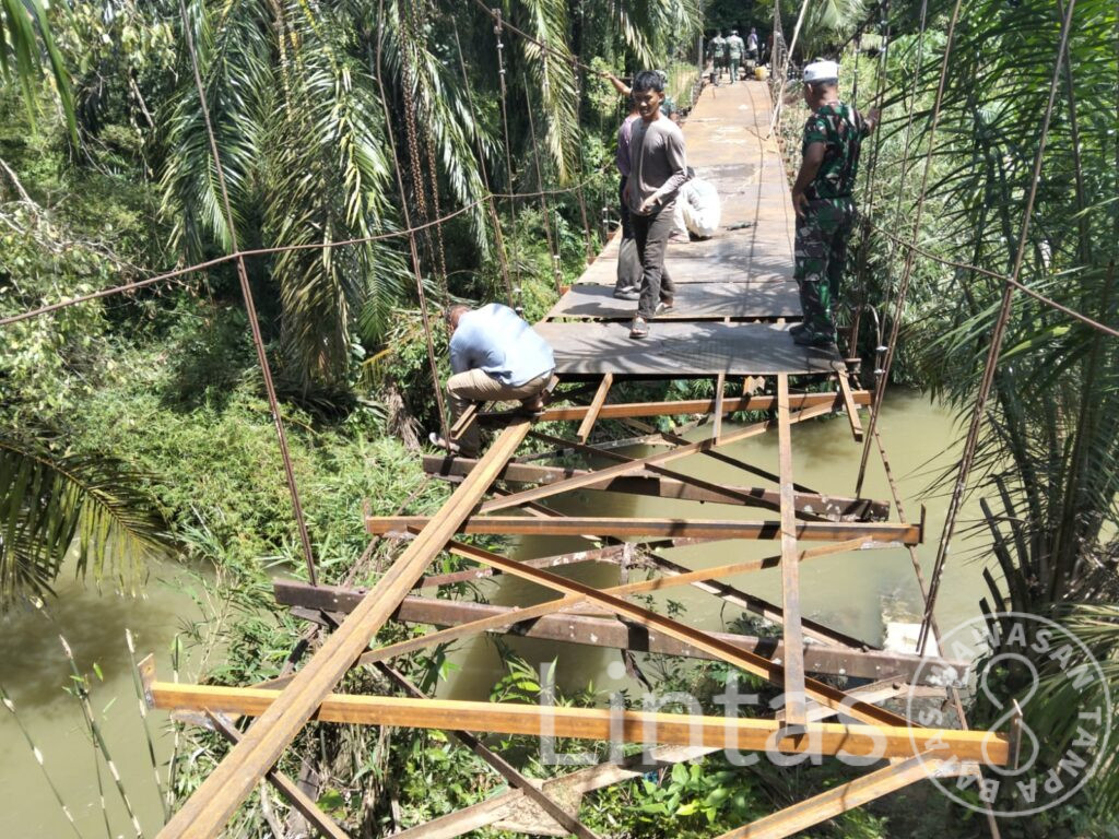 Perbaikan dilakukan secara gotong royong bersama masyarakat setempat. Sinergi tersebut mempercepat penyelesaian pekerjaan sehingga jembatan sepanjang 57 meter yang melintasi Sei (sungai) Kanan kini kembali dapat difungsikan sebagai jalur penghubung utama antarwilayah.
