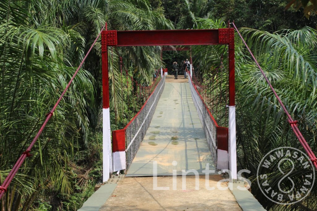 LABUHANBATU SELATAN, tniad.mil.id — Kodim 0209/Labuhanbatu menuntaskan perbaikan Jembatan Gantung Perintis di Dusun Patihe Jae, Desa Sampean, Kecamatan Sei Kanan, Kabupaten Labuhanbatu Selatan, Senin (23/2/2026). Rampungnya perbaikan ini memastikan mobilitas warga kembali normal setelah sebelumnya terkendala rusaknya struktur jembatan.