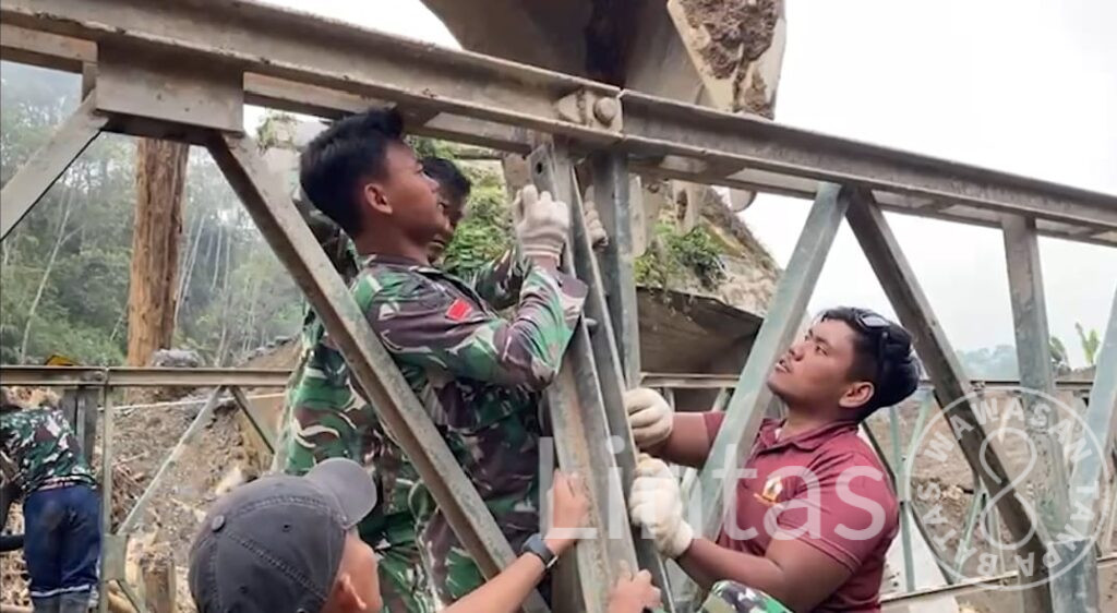 Pengerjaan jembatan dilaksanakan oleh prajurit TNI AD dari Batalyon Zeni Konstruksi 13/Karya Etmaka (Yonzikon 13/KE) yang didatangkan dari Jakarta. Proses pembangunan dilakukan secara cepat, terukur, dan tetap mengutamakan aspek keselamatan konstruksi.