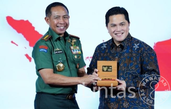 Panglima TNI Jenderal TNI Agus Subiyanto dan Menteri BUMN Erick Thohir menandatangani nota kesepahaman sinergitas tugas dan fungsi Kementerian Badan Usaha Milik Negara (BUMN) dan Tentara Nasional Indonesia (TNI), bertempat di Wisma A Yani kawasan Menteng, Jakarta Pusat, Senin (25/03/2024).