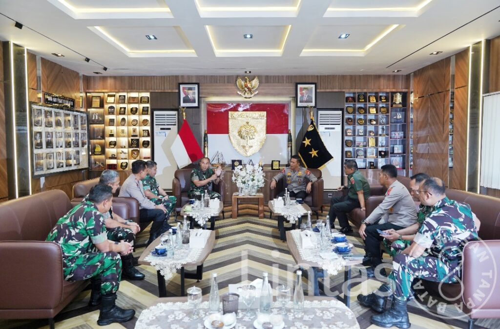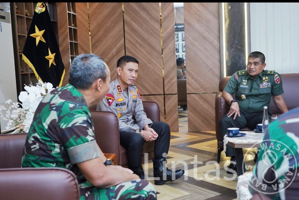 Makassar – Pangdam XIV/Hasanuddin Mayjen TNI Windiyatno didampingi sejumlah Pejabat Utama (PJU) Kodam menerima kunjungan silaturahmi dari Kapolda Sulsel Irjen Pol. Drs. Rusdi Hartono, M.Si., bersama rombongan, bertempat di Ruang Tamu Pangdam, Makodam, Jl. Urip Sumoharjo, Kota Makassar. Rabu (22/10/2025).