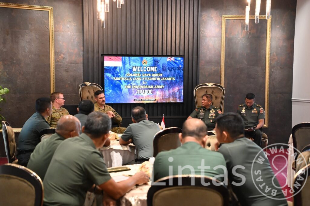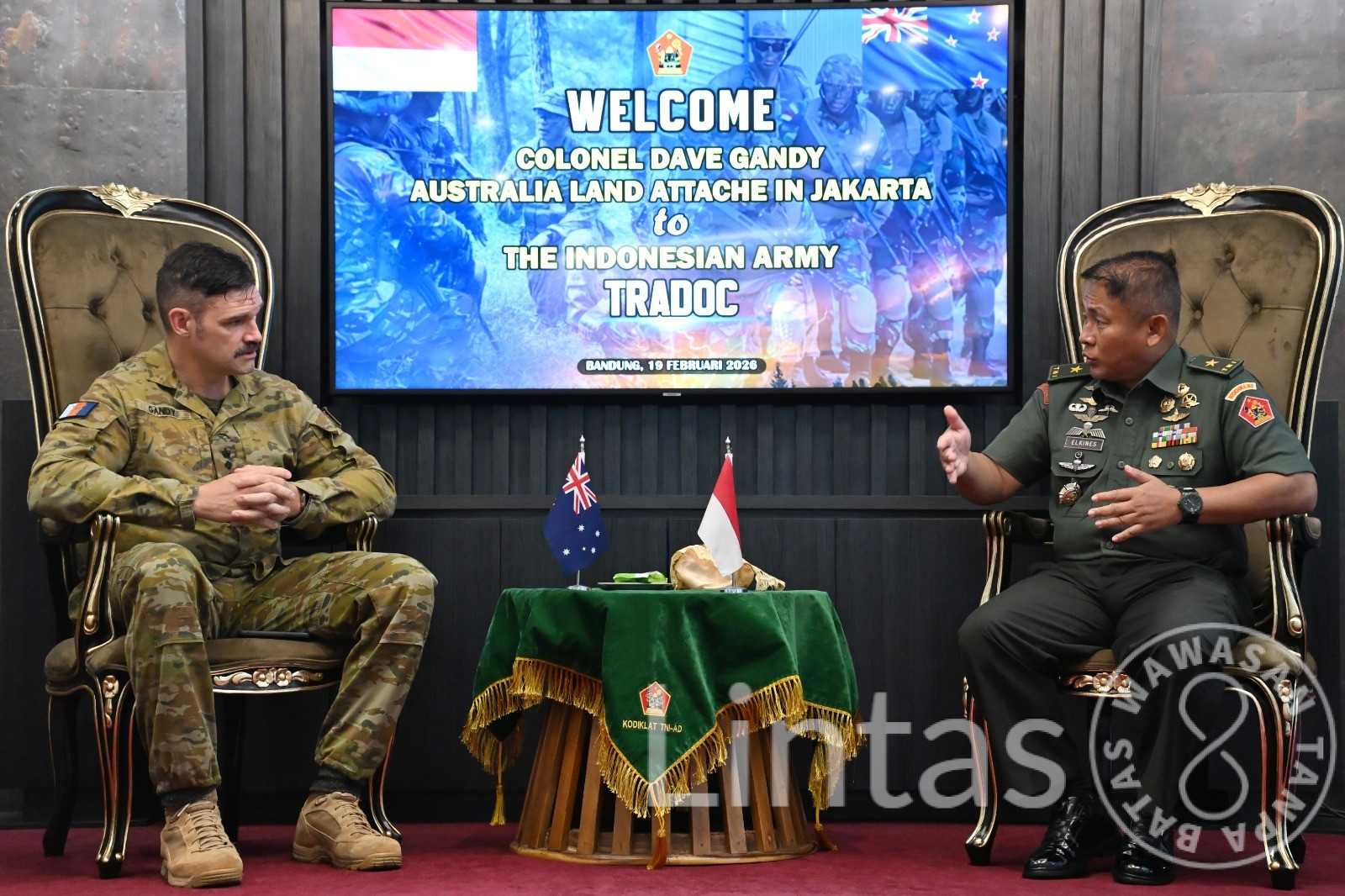 Bandung. Komandan Kodiklatad Letjen TNI Mohamad Hasan yang diwakili oleh Dirlat Kodiklatad Brigjen TNI Brigjen TNI Elkines Villando Dewangga K, M.AP., menerima kunjungan Atase Angkatan Darat Australia Colonel Dave Gandy bertempat di Lounge Room Ganesha Makodiklatad. Kamis (19/2/2026).
