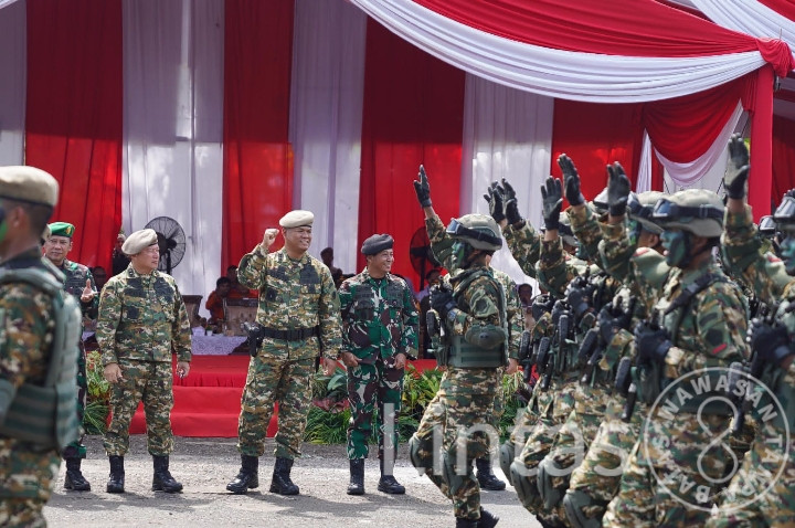 BANJARBARU, KALIMANTAN SELATAN, tniad.mil.id – Wakil Kepala Staf Angkatan Darat (Wakasad) Letjen TNI Tandyo Budi R. memimpin Upacara Penetapan 500 personel Komponen Cadangan (Komcad) Gelombang I Tahun 2024 di Lapangan Murjani, Banjarbaru, Kalimantan Selatan, Rabu (11/9/2024). Upacara ini merupakan langkah strategis dalam memperkuat sistem pertahanan negara di wilayah Pulau Kalimantan dan Ibu Kota Nusantara (IKN).