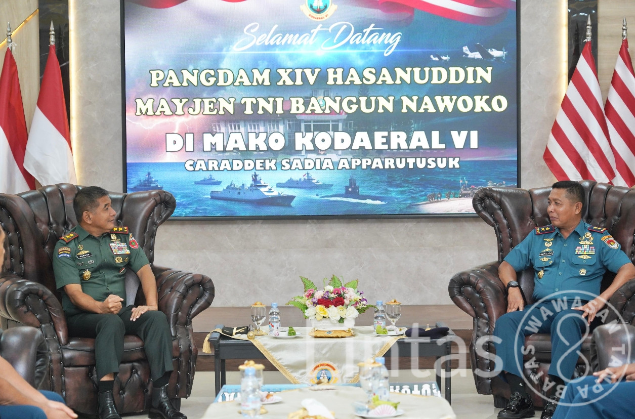 Makassar — Dalam rangka memperkuat sinergi dan soliditas antar matra TNI, Pangdam XIV/Hasanuddin Mayjen TNI Bangun Nawoko melaksanakan kunjungan silaturahmi ke Markas Komando Daerah Angkatan Laut (Kodaeral) VI, yang bertempat di Jl. Yos Sudarso, Kota Makassar. Rabu, (17/12/2025).