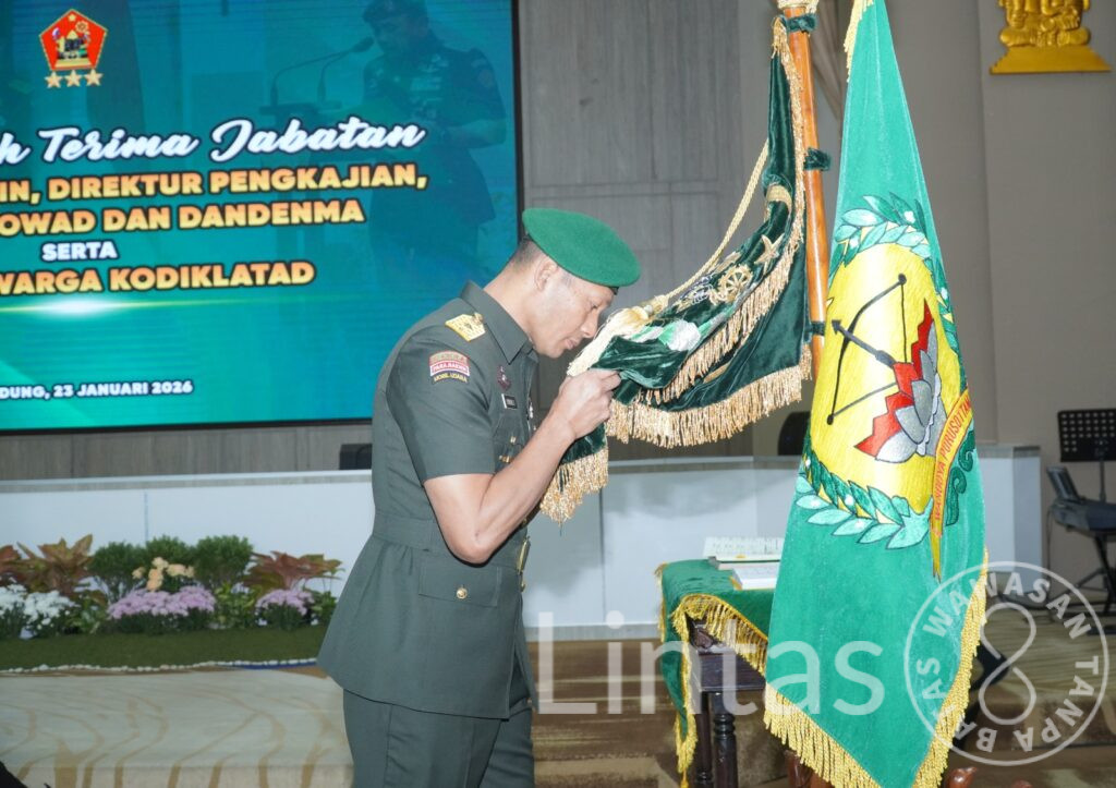 Bandung. Komandan Kodiklatad Letjen TNI Mohamad Hasan memimpin Upacara Serah Terima Jabatan (Sertijab) Dirdok, Dirjian, Danpusdikkowad serta Dandenma Kodiklatad yang dirangkaikan dengan tradisi warga Kodiklatad, bertempat di Aula M. Toha Kodiklatad, Jumat (23/1/2026).