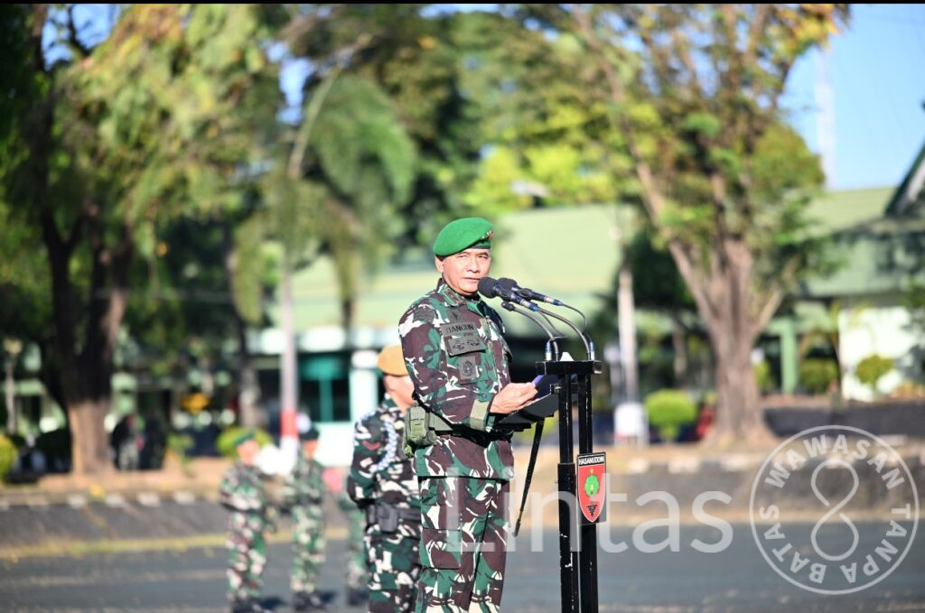Pada kesempatan ini, Pangdam membacakan sambutan Panglima TNI Jenderal TNI Agus Subiyanto, S.E., M.Si., yang menyampaikan apresiasi dan rasa bangga atas semangat, dedikasi, dan loyalitas yang telah ditunjukkan seluruh personel TNI dalam setiap pelaksanaan tugas, ditengah perkembangan lingkungan strategis global, regional maupun nasional yang dinamis dan kompleks serta berharap Setiap Prajurit TNI harus terus menjadi pioner dalam membangun kinerja TNI yang “Profesional, Responsif, Integratif, Modern dan Adaptif”, ditengah perubahan lingkungan strategis yang dinamis.