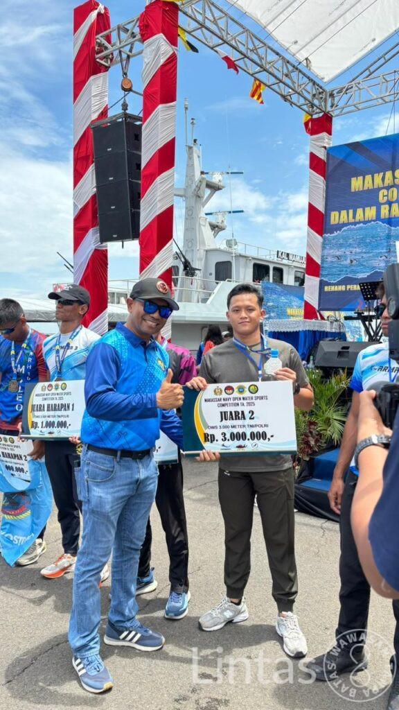 Makassar – Prestasi membanggakan kembali ditorehkan oleh prajurit Kodam III/Siliwangi. Anggota Yonif TP 839/Satria Abyakta, Serda Reyza Saputra Aldeyana, berhasil meraih Juara 2 dalam ajang Makassar Navy Open Water Sport Competition 2025 kategori Renang 3 Km TNI-POLRI yang digelar di Kodaeral VI Makassar, Minggu (26/10/2025).
