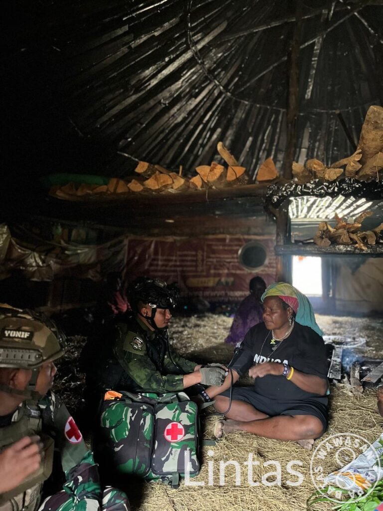 Kegiatan yang dipimpin oleh Serda Arfin ini bukan sekadar kunjungan, melainkan wujud nyata kepedulian TNI terhadap warga. Para prajurit hadir langsung di tengah masyarakat, menyapa penuh keakraban dan memberikan pelayanan kesehatan gratis di dalam honai—rumah adat yang menjadi simbol persatuan masyarakat Papua.