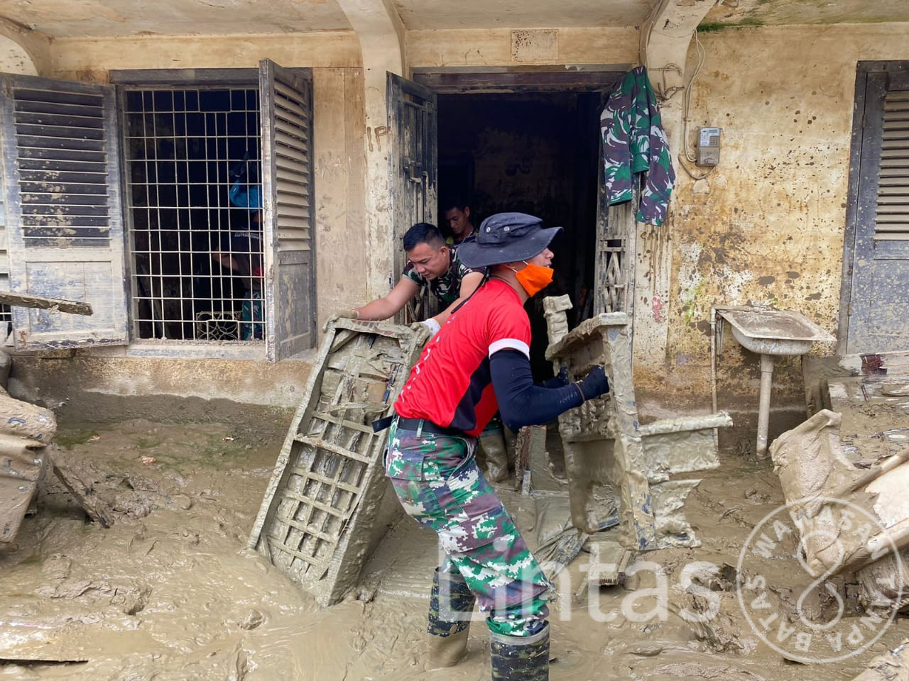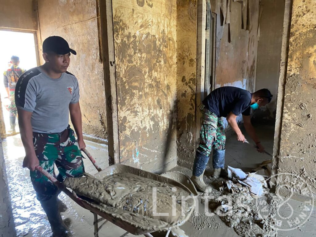 Prajurit Yonif 115/Macan Leuser Bersihkan Lumpur Banjir di Kantor MPD Aceh Tamiang