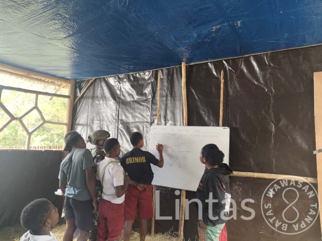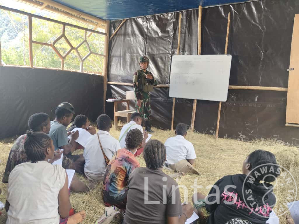 MAYUBERI – Di sebuah sudut kecil Papua, tepatnya di SD Mayuberi, senjata dan tas tempur berganti dengan kapur tulis dan buku pelajaran. Suara komando taktis bergema lirih menjadi suara seorang pengajar yang sabar. Inilah pemandangan mengharukan yang ditunjukkan oleh prajurit Satgas Yonif 700/Wyc dari Pos Mayuberi, yang dengan penuh dedikasi menjadi guru pengganti bagi anak-anak penerus bangsa, (24/09/2025).