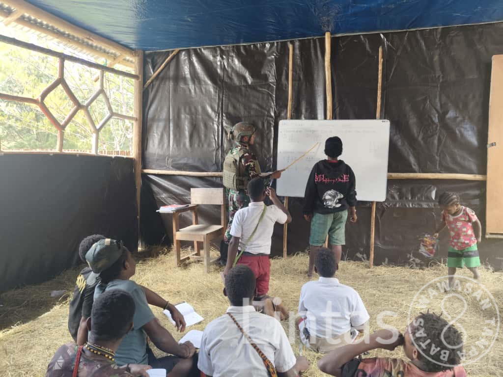 MAYUBERI – Di sebuah sudut kecil Papua, tepatnya di SD Mayuberi, senjata dan tas tempur berganti dengan kapur tulis dan buku pelajaran. Suara komando taktis bergema lirih menjadi suara seorang pengajar yang sabar. Inilah pemandangan mengharukan yang ditunjukkan oleh prajurit Satgas Yonif 700/Wyc dari Pos Mayuberi, yang dengan penuh dedikasi menjadi guru pengganti bagi anak-anak penerus bangsa, (24/09/2025).