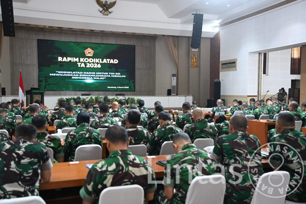 Bandung. Komandan Kodiklatad Letjen TNI Mohamad Hasan memimpin Rapat Pimpinan (Rapim) Kodiklatad Tahun Anggaran 2026 yang digelar di Aula M. Toha Kodiklatad, Rabu (4/3/2026).