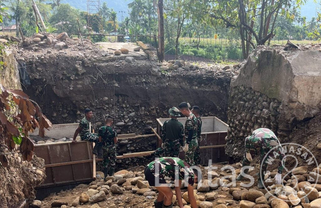 Pengerjaan jembatan melibatkan personel dari Zidam XX/TIB, Kodim 0308/Pasaman, serta Yonif 844/KB, yang bekerja bersama masyarakat setempat secara gotong royong. Sinergi yang terjalin menjadi cerminan kemanunggalan TNI dan rakyat dalam menghadapi situasi pascabencana.