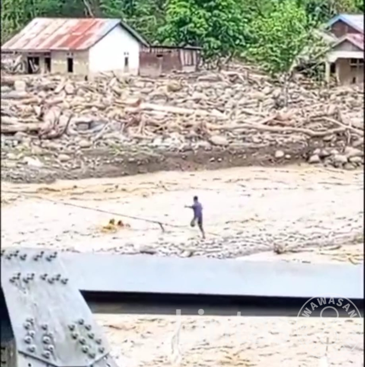 Peristiwa tersebut terjadi saat korban menyeberangi sungai menggunakan tali seling yang dipasang sementara pascabencana. Korban diduga terpeleset akibat salah pijakan sehingga terjatuh dan terbawa arus sungai yang cukup deras.