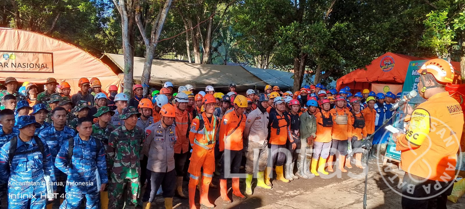 Ribuan personel gabungan dari unsur TNI, Polri, Basarnas, BPBD, dan relawan dikerahkan untuk mempercepat proses pencarian korban yang diduga masih tertimbun material longsoran.
