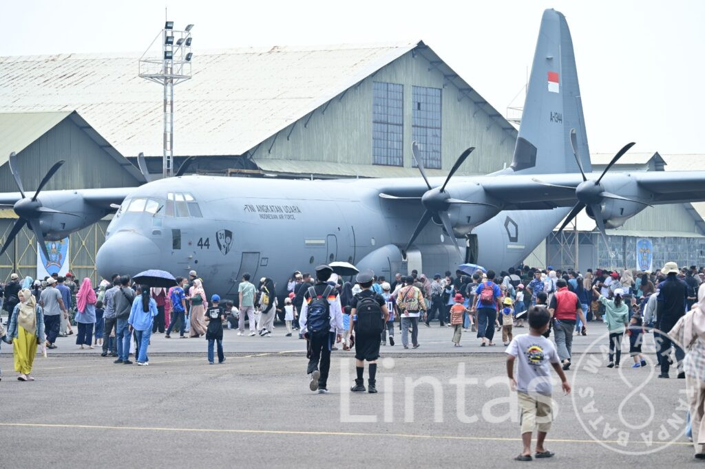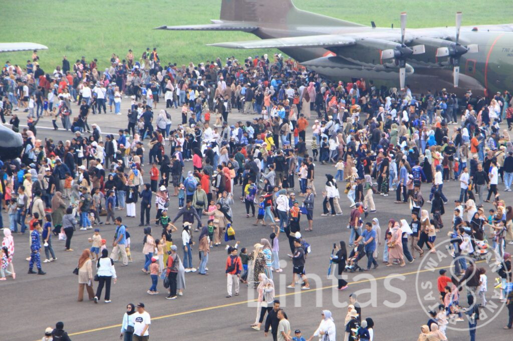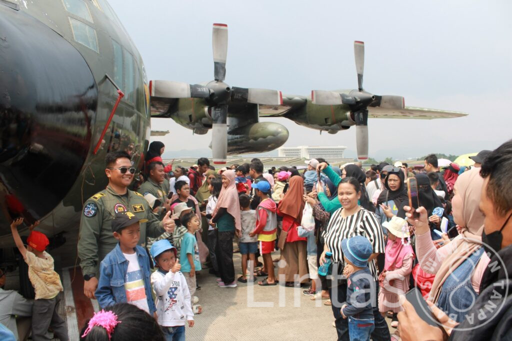 Bandung – Ribuan warga Kota Bandung dan sekitarnya memadati area Lanud Husein Sastranegara dalam acara Open Base yang digelar dalam rangka memperingati Hari Ulang Tahun (HUT) ke-80 Tentara Nasional Indonesia (TNI), Minggu (5/10).