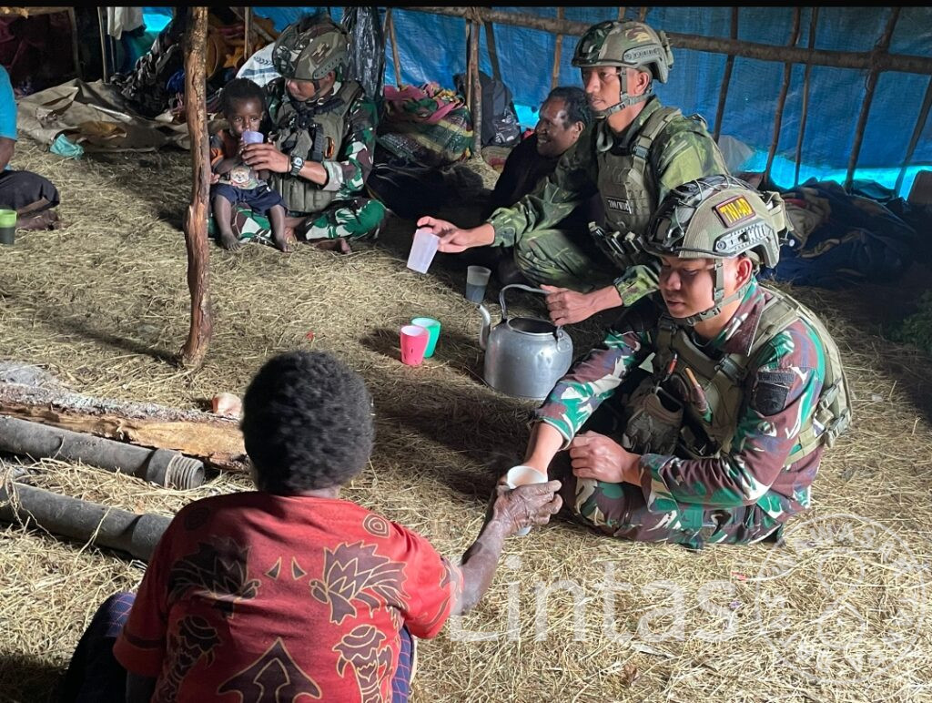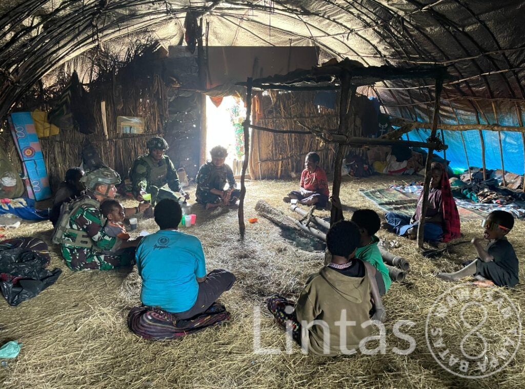 Dipimpin oleh Serda Siregar, para prajurit dengan langkah tegap namun hati lembut memasuki setiap honai. Bukan sebagai tamu, melainkan sebagai bagian dari keluarga besar yang datang untuk bersilaturahmi. Kegiatan Binter terbatas ini berubah menjadi sebuah dialog akrab, di mana cerita-cerita tentang kehidupan, tantangan air bersih, hingga akses pendidikan, mengalir begitu saja layaknya sungai yang mengalir di lembah Eromaga.