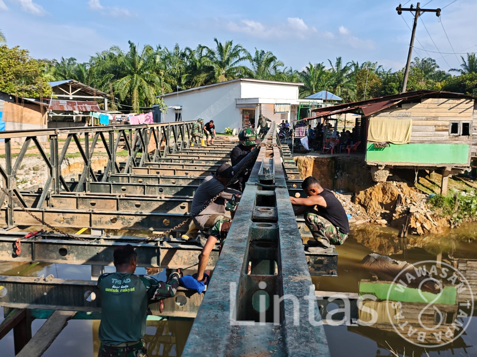 Pembangunan jembatan tersebut dilaksanakan secara intensif setiap hari sejak pagi hingga sore dengan melibatkan personel TNI yang tergabung dari Yonzipur 1/DD, Yonzikon 14/SWS, Yonzipur 11/DW, serta didukung Babinsa Koramil 07/Stabat Kodim 0203/Langkat.