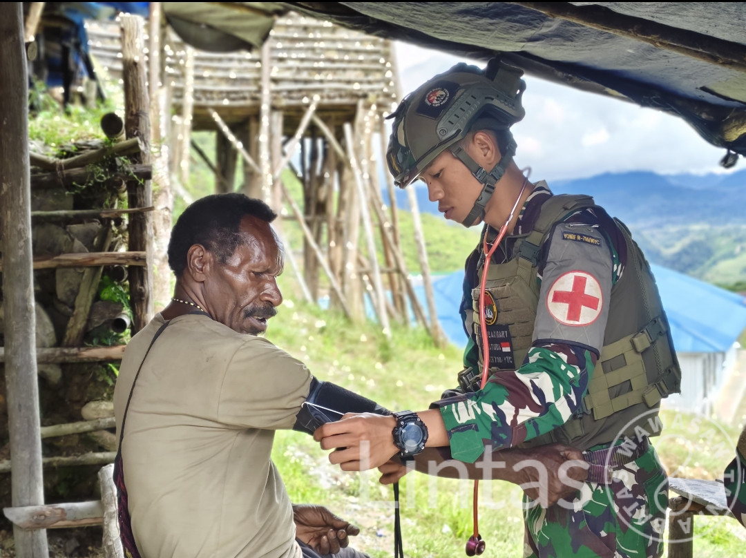 Di tengah keterbatasan fasilitas kesehatan di pedalaman Papua, Satgas Yonif 700/Wira Yudha Cakti melalui Pos Pintu Jawa kembali menunjukkan peran pentingnya sebagai garda terdepan pelayanan kemanusiaan. Salah satu wujud nyatanya adalah kegiatan Binter terbatas berupa pelayanan kesehatan gratis kepada warga Kampung Weni, Distrik Mage’abume, Kabupaten Puncak.