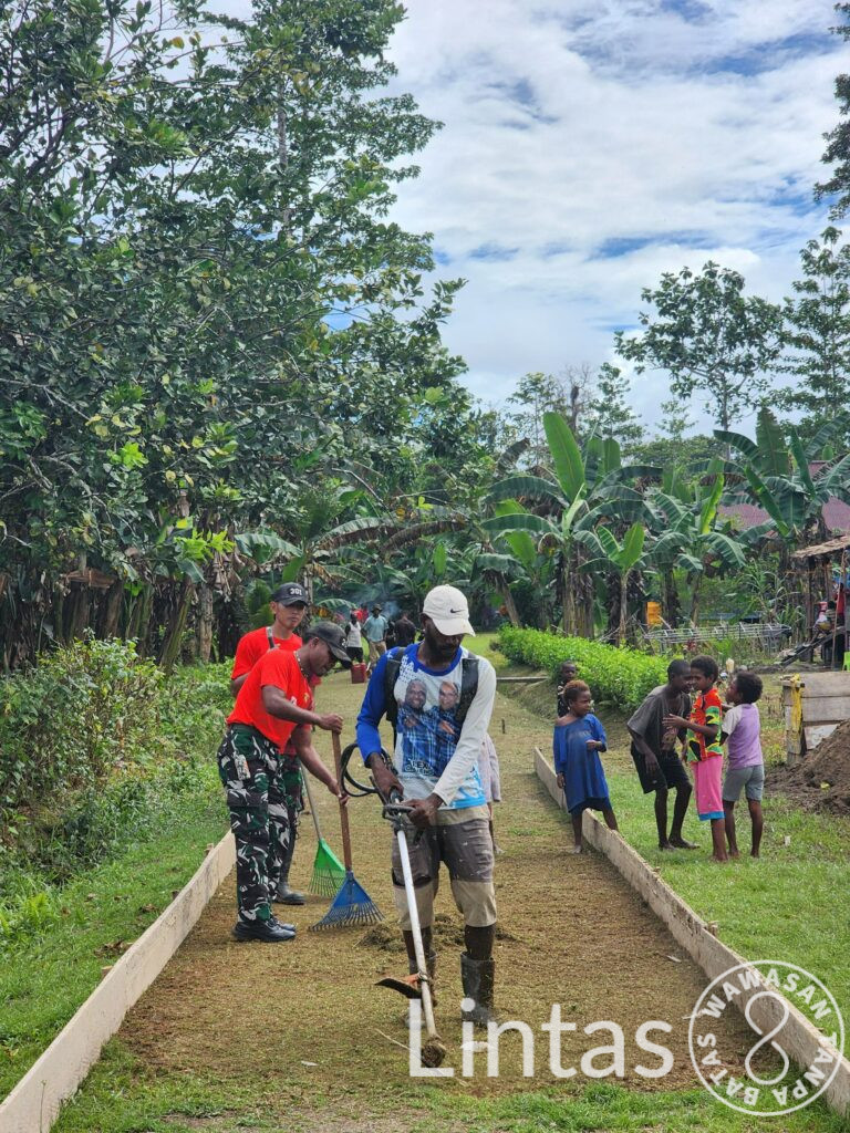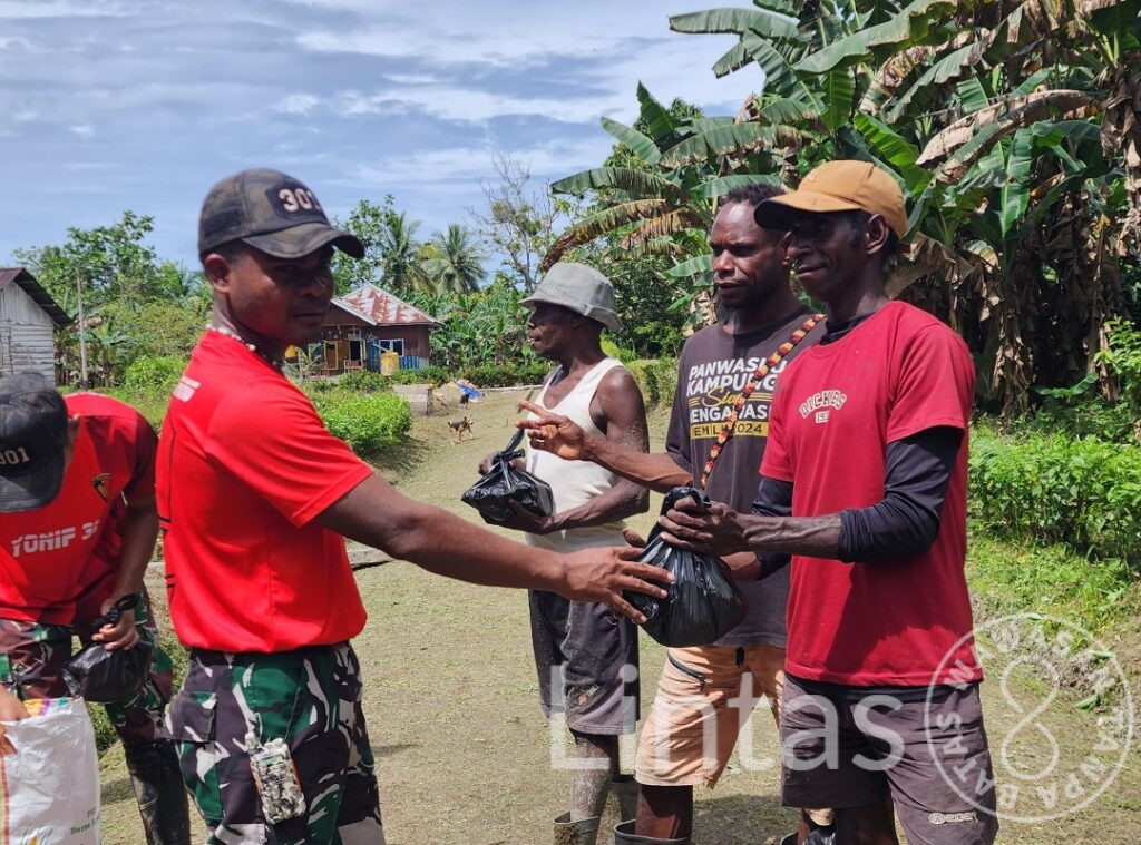 Satgas Yonif 301/Pks Ajak Warga Kampung Kanmapri bergotong Royong dan Peduli Kebersihan Lingkungan