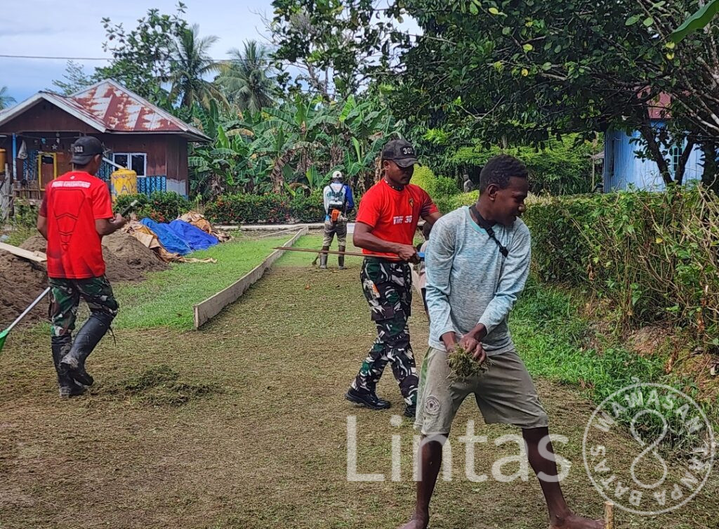 • Satgas Yonif 700/Wyc Bantu Warga Mayuberi Bangun Lapangan Voli Demi Jalin Keakraban