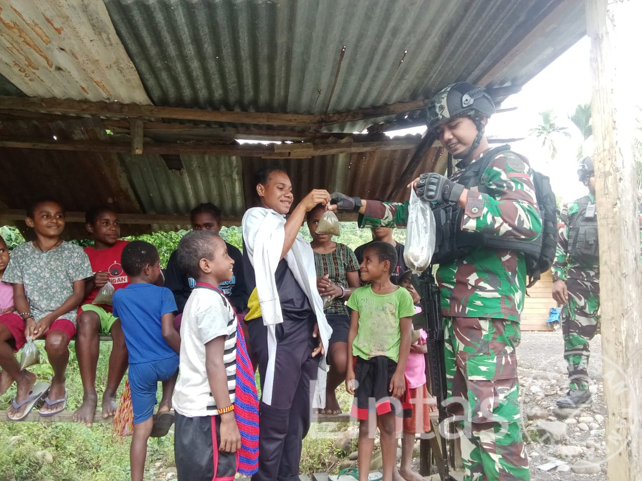 “Terima kasih TNI, terima kasih personil Satgas yang telah peduli terhadap warga disini. Kami tahu bapak TNI telah berbuat banyak untuk kampung ini,” tutur Melky.