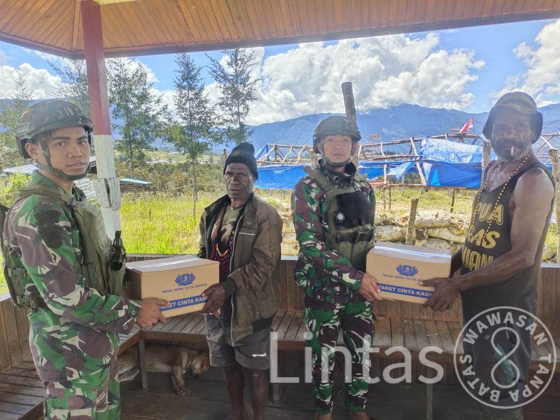 Danpos Eromaga Lettu Inf Anggun Mengatakan, Inisiatif Satgas Yonif 323 Kostrad Pos Eromaga Untuk membagikan Sembako kepada Tokoh Masyarakat Kampung Eromaga merupakan upaya TNI untuk membantu memberikan pelayanan kebutuhan dasar, guna meringankan beban Masyarakat, Ungkap Danpos