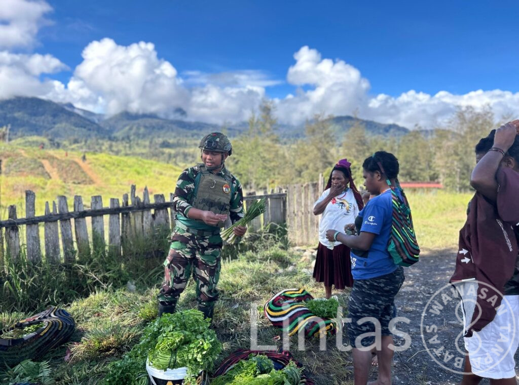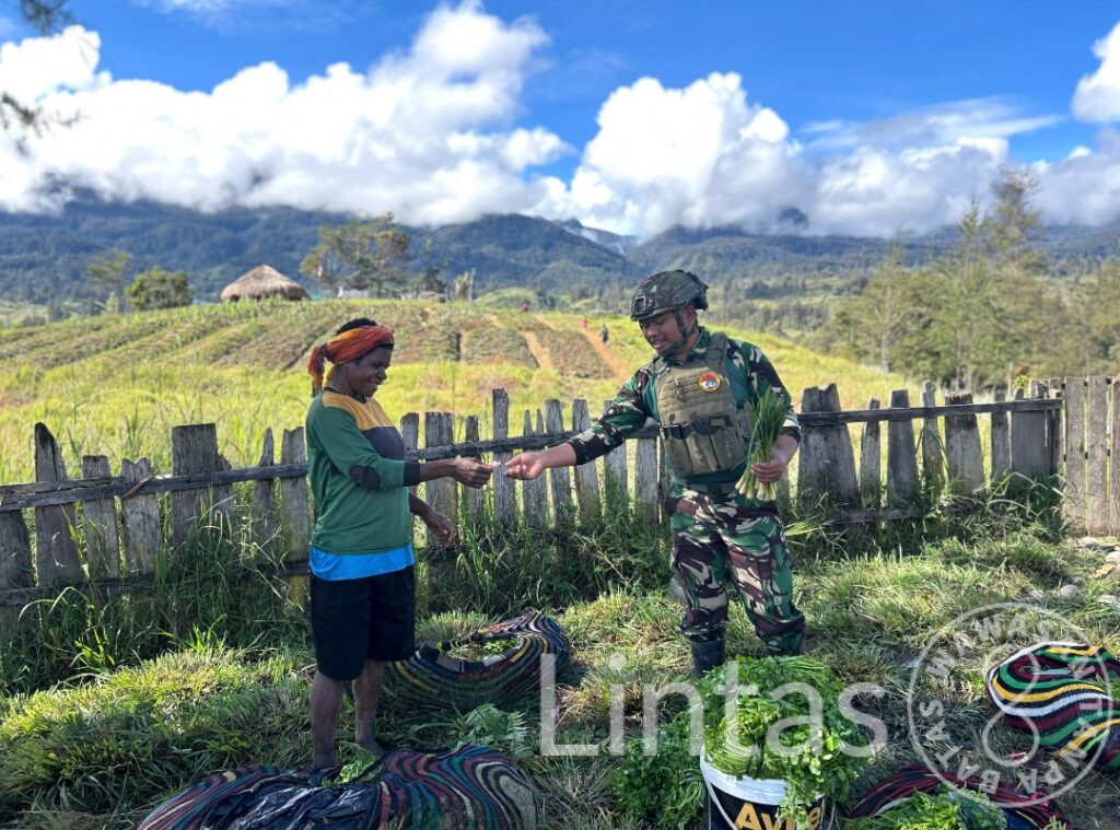 Puncak, Papua — Di bawah hangat mentari pegunungan yang menembus kabut pagi Distrik Omukia, prajurit Satgas Yonif 700/Wyc dari Pos Titik Kuat Bendungan kembali menunjukkan wajah sejatinya sebagai sahabat rakyat. Kali ini, mereka melaksanakan kegiatan Binter terbatas dengan aksi borong hasil tani milik warga Kampung Nipuralome, Kabupaten Puncak, (26/10/2025).