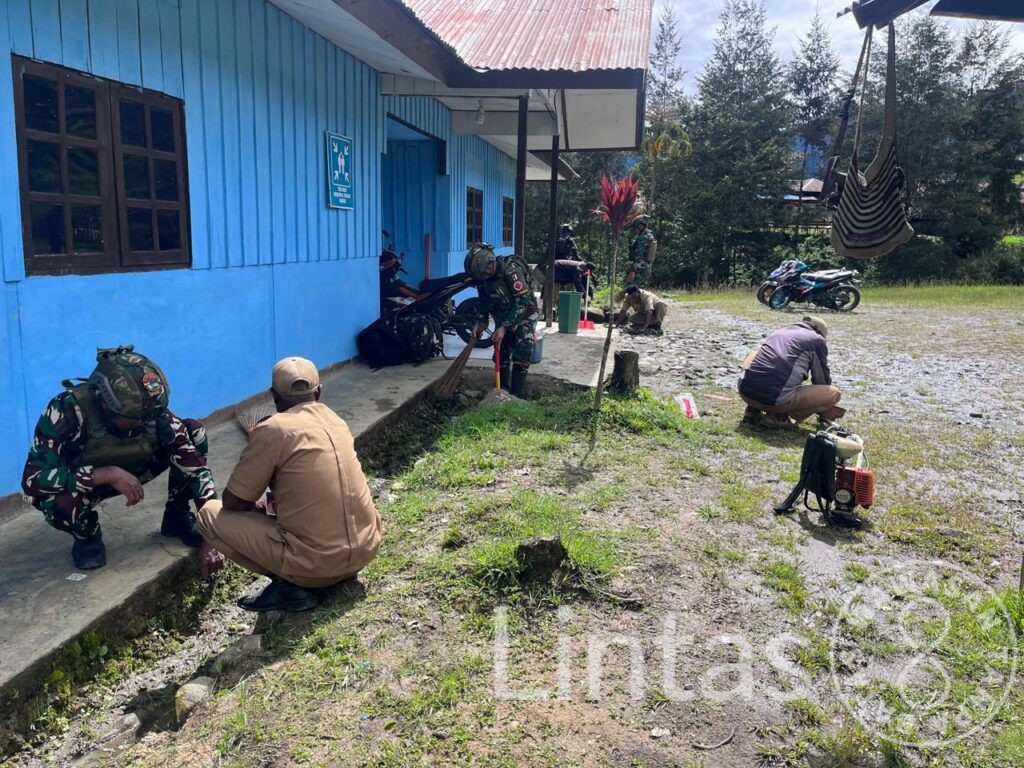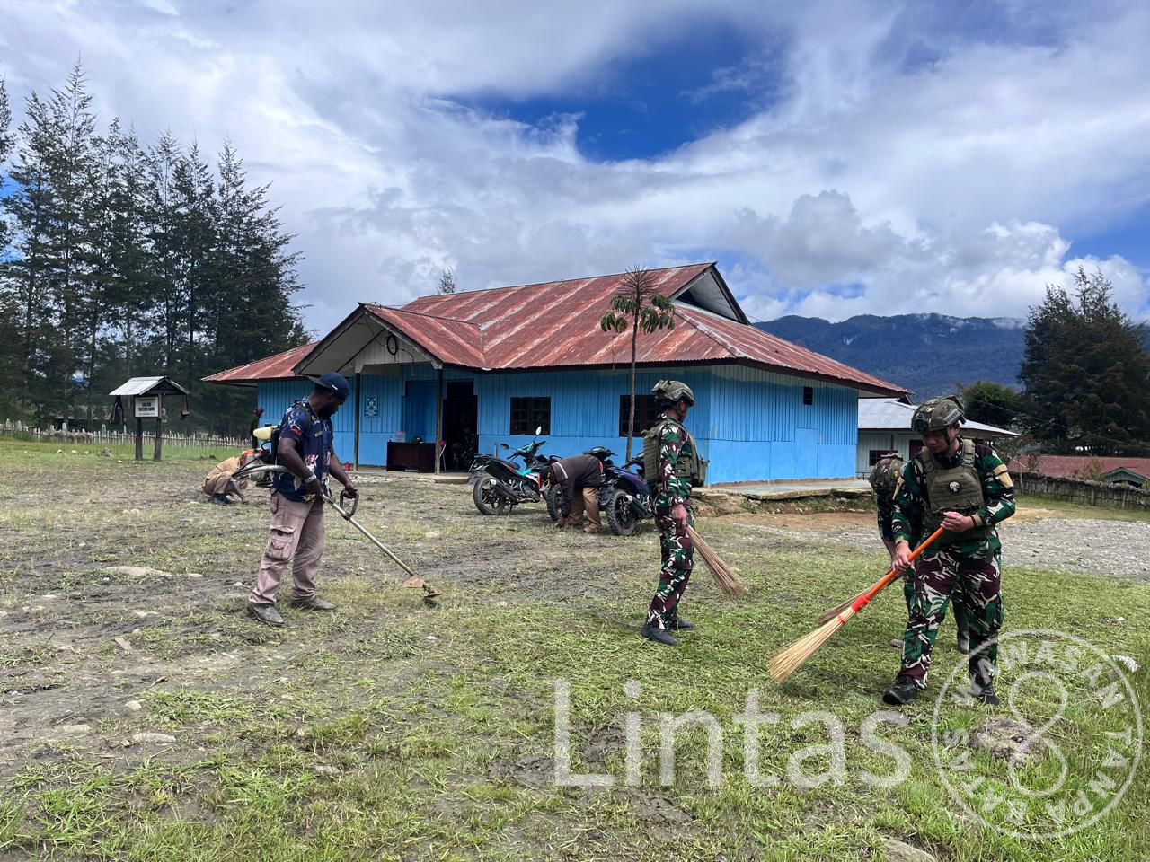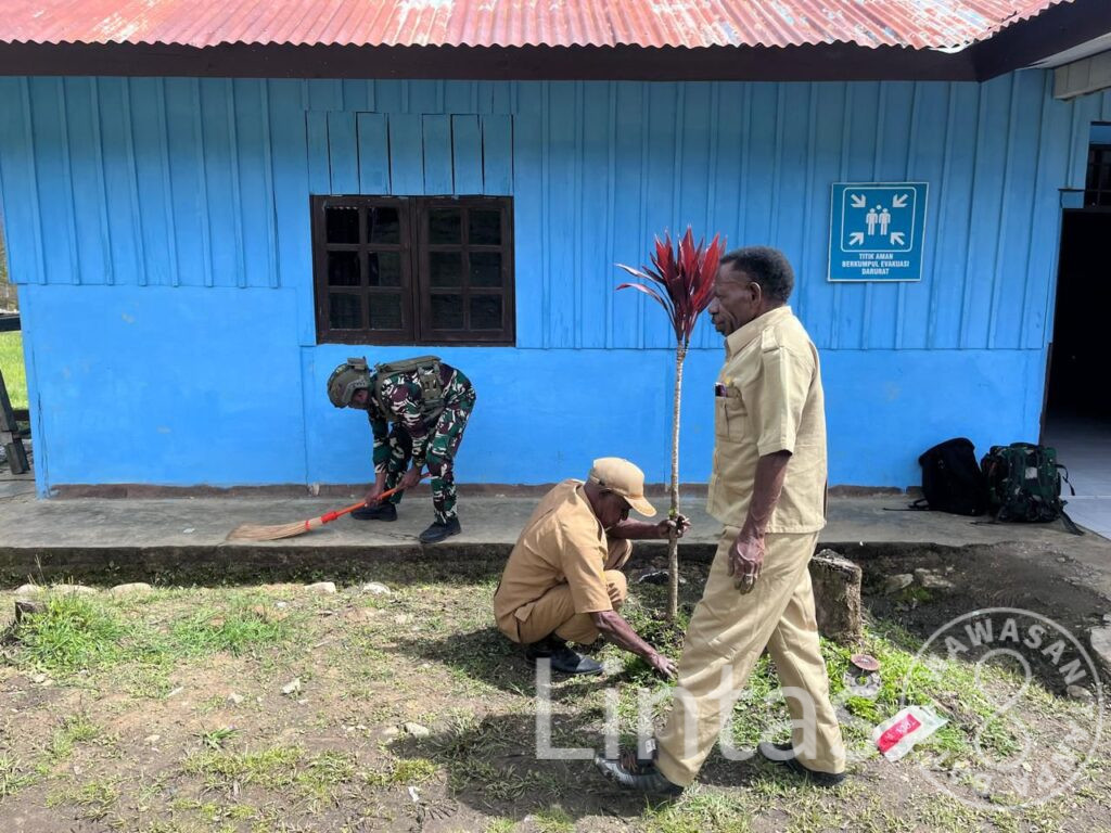 Kegiatan bersih-bersih ini melibatkan personel Satgas Yonif 700/WYC yang dipimpin oleh Danton Kesehatan, Letda Ckm Muh Akbar Amd Kep. Dengan penuh semangat, para prajurit bersama aparat distrik dan masyarakat membersihkan halaman, memangkas rumput, serta menata lingkungan sekitar kantor distrik agar lebih rapi dan nyaman.