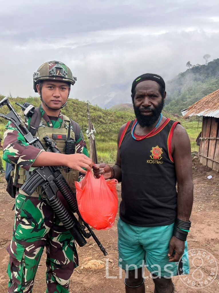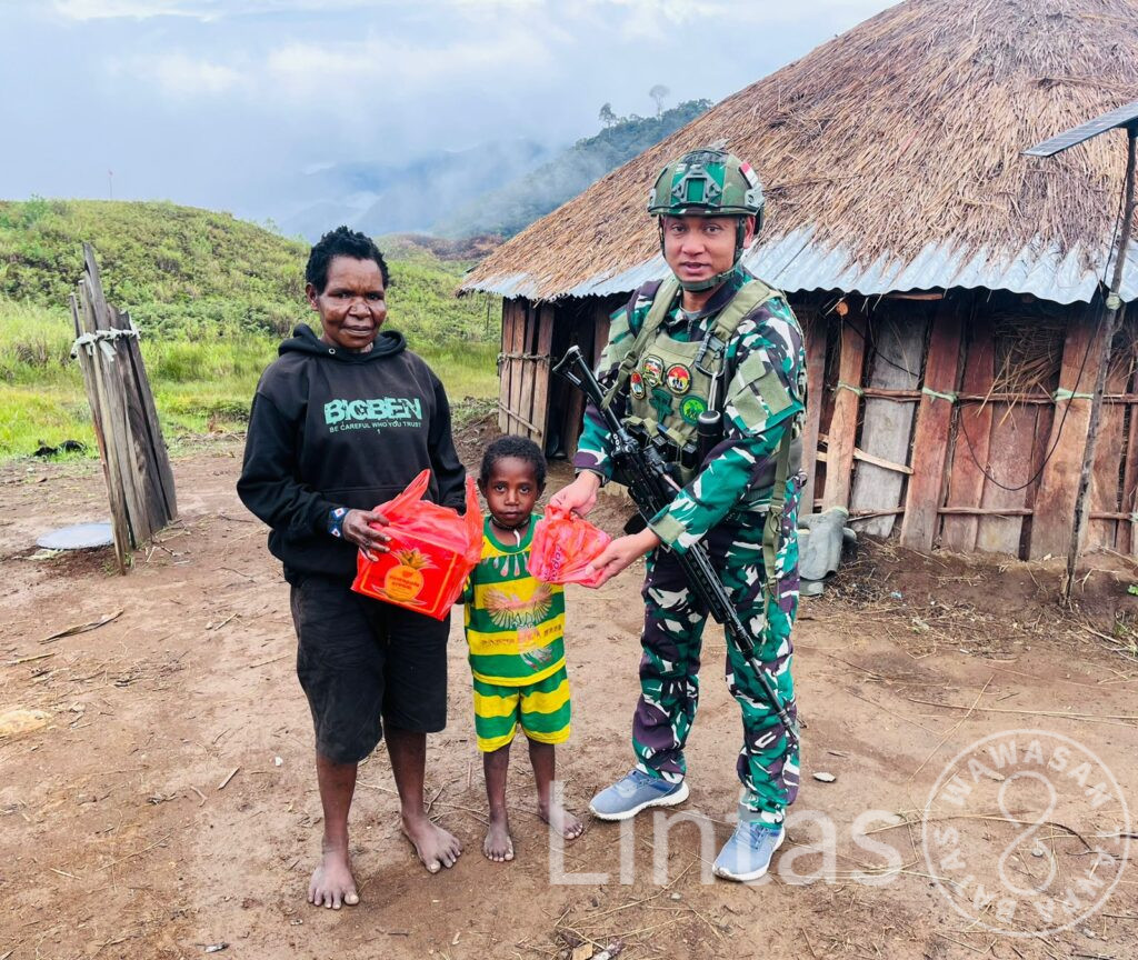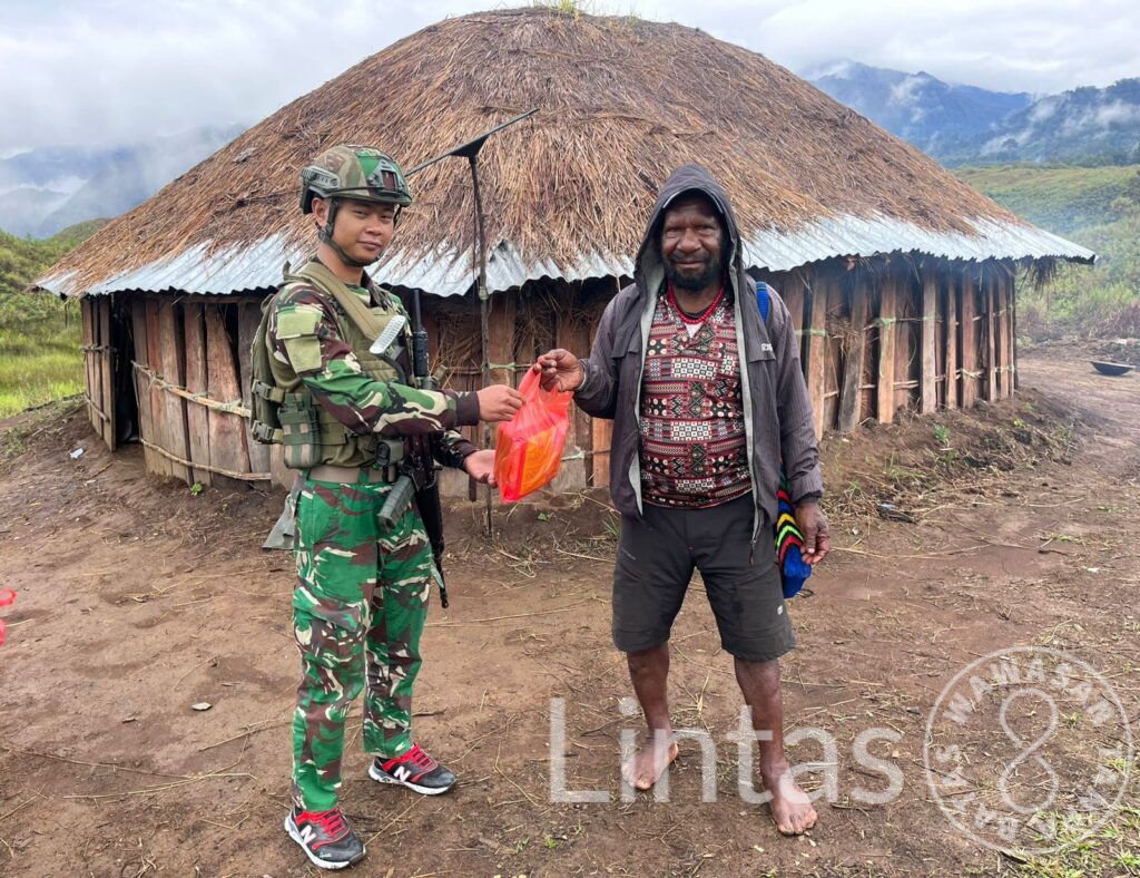 Kegiatan yang dipimpin oleh Serda Hermawan itu berlangsung di Honai Mama Mute, salah satu tokoh perempuan yang dikenal aktif dalam kehidupan sosial masyarakat Kampung Wako. Dalam kegiatan tersebut, prajurit Satgas membagikan beras, biskuit, serta bibit kacang panjang kepada warga sebagai bentuk dukungan terhadap kebutuhan pangan dan semangat ketahanan pangan masyarakat setempat.