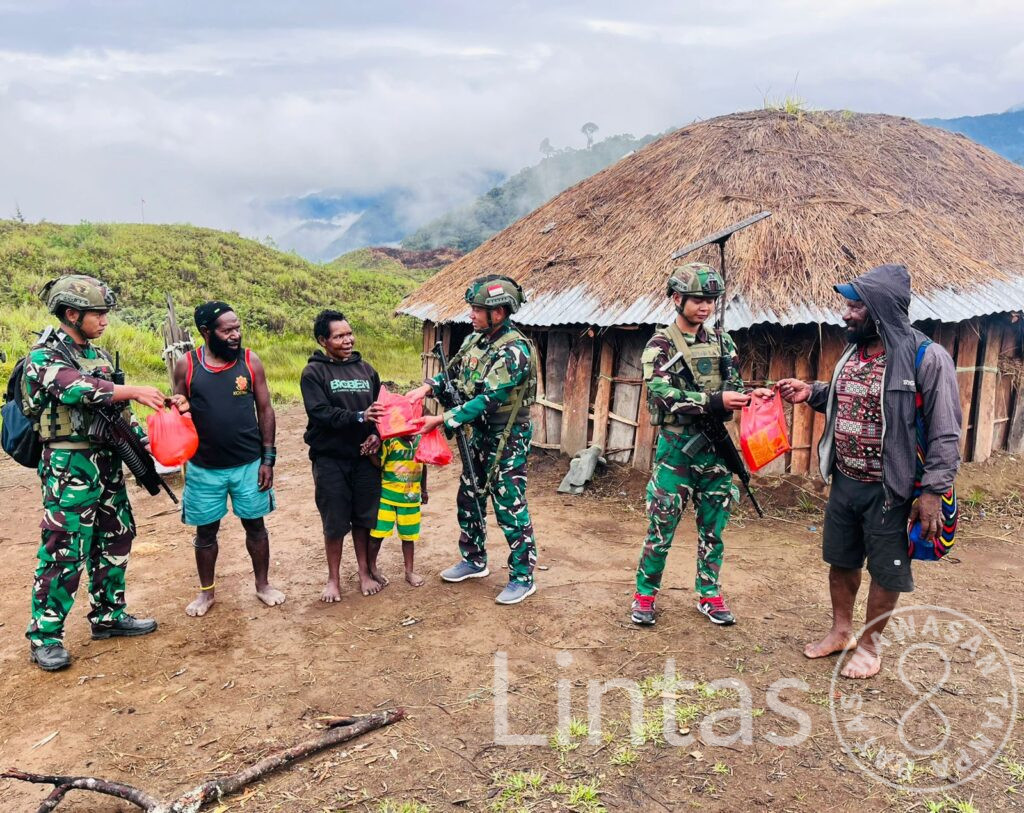 Kabupaten Puncak — Suasana hangat menyelimuti Kampung Wako, Distrik Gome, ketika prajurit Satgas Yonif 700/Wira Yudha Cakti (WYC) melalui Pos Kout Koper melaksanakan kegiatan Binter Terbatas berupa Safari Honai dan berbagi sarana logistik (Sargal) kepada masyarakat, Senin (28/10/2025).