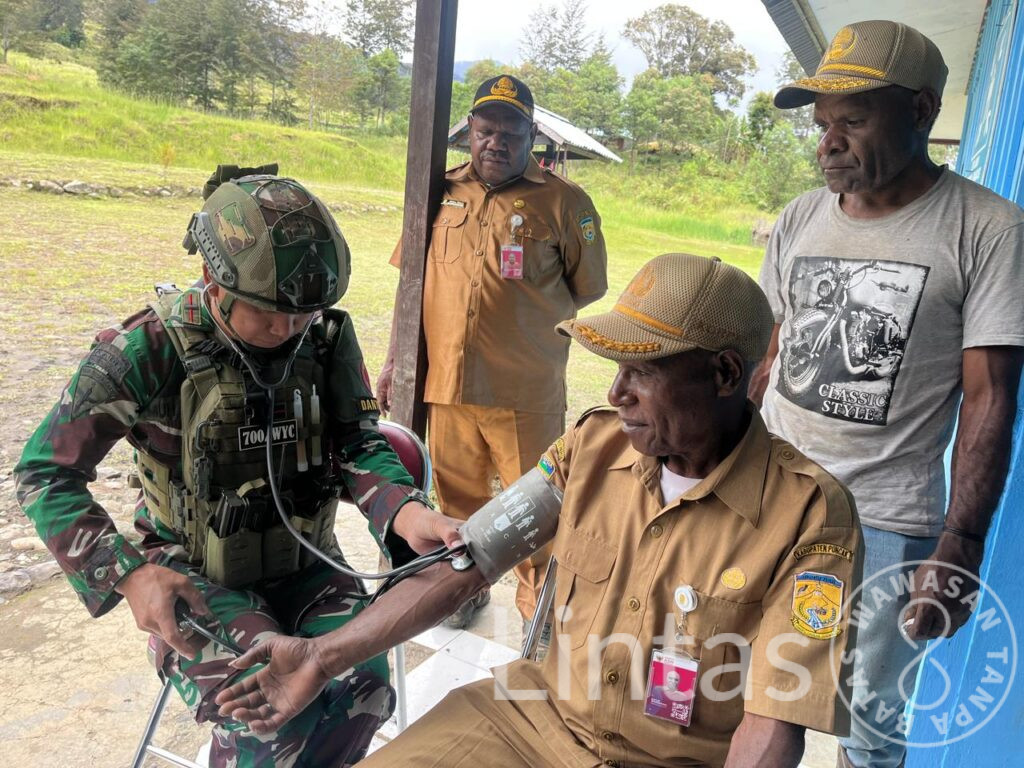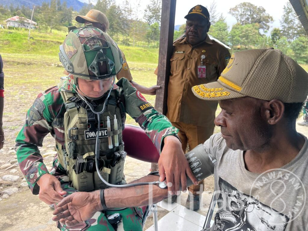 Satgas Yonif 700/Wyc melalui Pos Kout Koper menunjukkan wujud nyata pengabdian mereka dengan melaksanakan kegiatan pembinaan teritorial (binter) terbatas berupa pelayanan kesehatan bagi masyarakat di Kampung Wako, Distrik Gome, Kabupaten Puncak.