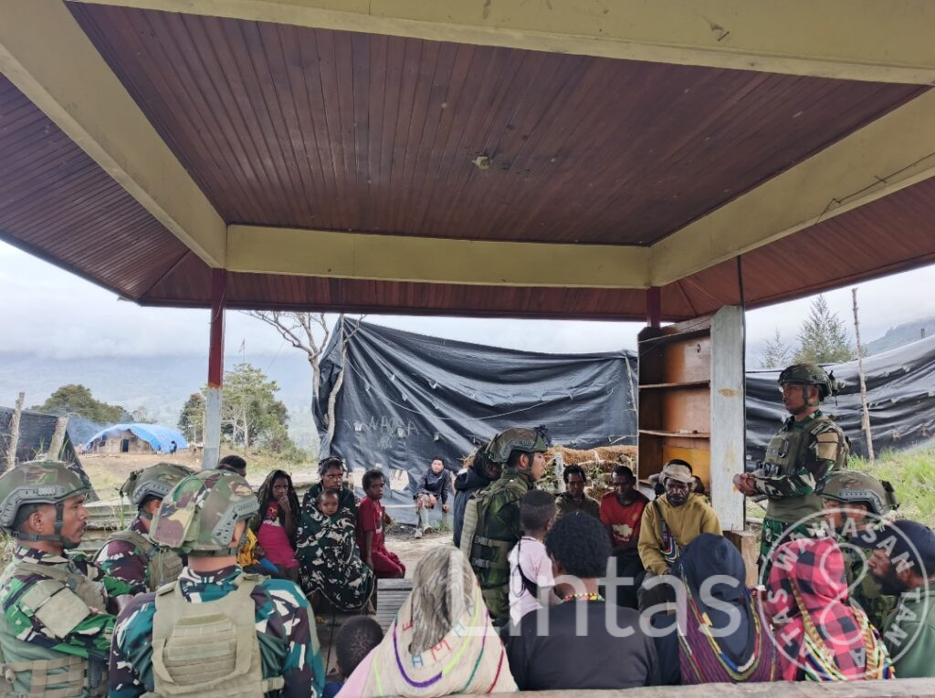 Dipimpin oleh Pratu Dandi Fernanda, seorang prajurit Nasrani dari Pos Eromaga, lantunan doa dan pujian mengalun syahdu di antara sepoi angin pegunungan. Ibadah bersama ini bukan hanya ritual keagamaan, tetapi juga menjadi ruang penguat harapan dan kehangatan spiritual di tengah keterbatasan.