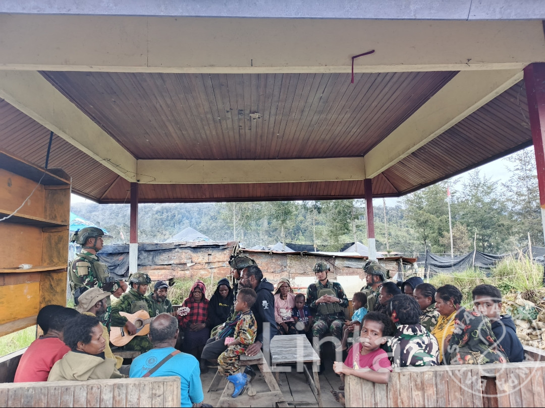 Dipimpin oleh Pratu Dandi Fernanda, seorang prajurit Nasrani dari Pos Eromaga, lantunan doa dan pujian mengalun syahdu di antara sepoi angin pegunungan. Ibadah bersama ini bukan hanya ritual keagamaan, tetapi juga menjadi ruang penguat harapan dan kehangatan spiritual di tengah keterbatasan.