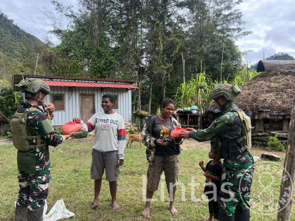 Satgas Yonif 700/Wyc Melaksanakan Safari Honai dan Berbagi Beras di Kampung Wuloni, Distrik Ilaga