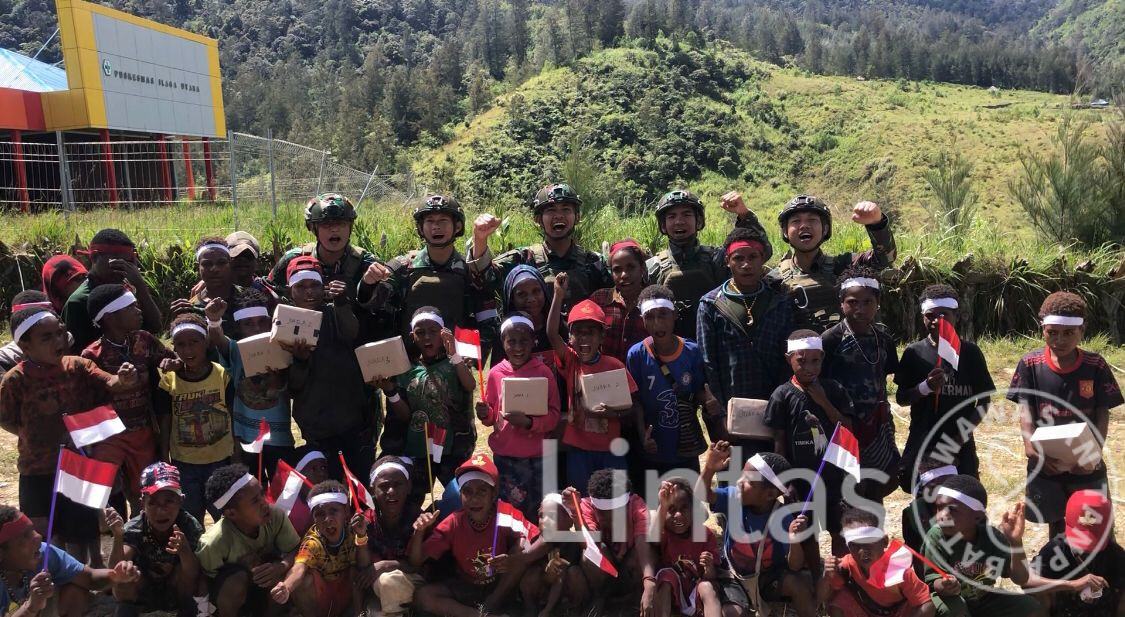 TK Mayuberi Pimpinan Lettu Inf Yudho bersama masyarakat Kampung Mayuberi merayakan peringatan HUT RI Ke-79 dengan menggelar perlombaan dan Makan Bersama, Kampung Mayuberi, Distrik Ilaga Utara, Kabupaten Puncak, Papua Tengah, Jumat (23/08/24)