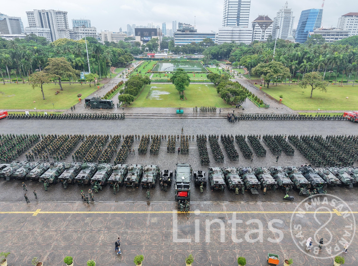 JAKARTA PUSAT, tniad.mil.id — TNI Angkatan Darat melalui Kodam Jaya/Jayakarta menyelenggarakan Apel Gelar Satuan dalam rangka kesiapsiagaan pengamanan menyambut Tahun Baru 2026. Apel dipimpin Kepala Staf Kodam Jaya/Jayakarta Brigjen TNI Zulhadrie S. Mara, M.Han., bertempat di Lapangan Silang Monas, Jakarta Pusat, Rabu (31/12/2025).