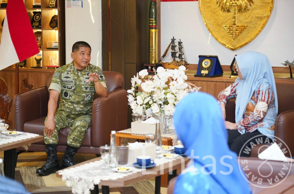 Makassar – Pangdam XIV/Hasanuddin Mayjen TNI Bangun Nawoko didampingi sejumlah Pejabat Utama (PJU) Kodam menerima kunjungan silahturahmi dari Bupati Gowa Dr. Hj. Sitti Husniah Talenrang, S.E., M.M., bersama rombongan, bertempat di Ruang Tamu Pangdam, Makodam, Jl. Urip Sumoharjo, Kota Makassar. Jumat, (10/4/2026).
