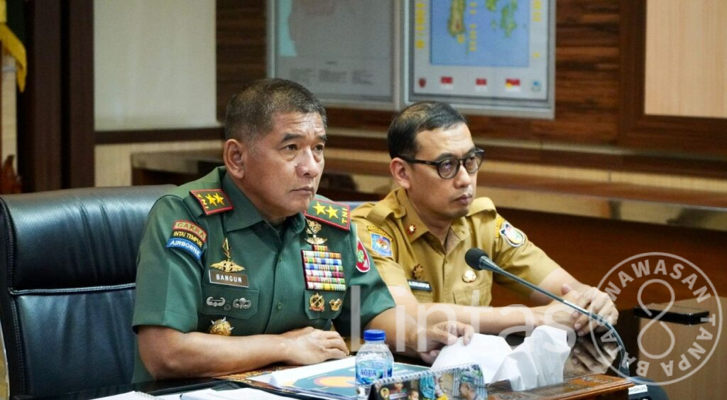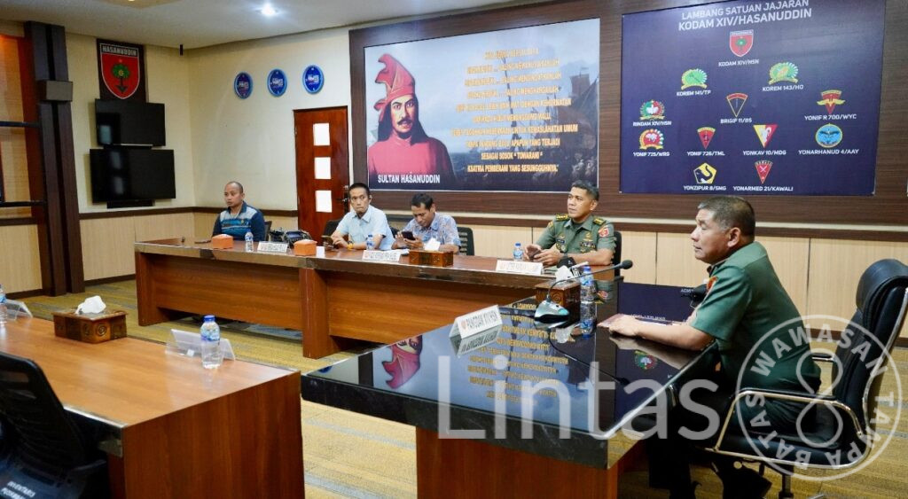 Makassar – Pangdam XIV/Hasanuddin Mayjen TNI Bangun Nawoko didampingi Sekretaris Daerah (Sekda) Kota Makassar Dr. Andi Zulkifli Nanda, Dinas Tata Kota serta PT. Agrinas mengikuti video conference (Vicon) bersama Presiden RI Prabowo Subianto, bertempat di Ruang Vicon Puskodalops Makodam, Jl. Urip Sumoharjo, Kota Makassar. Selasa, (25/11/2025).