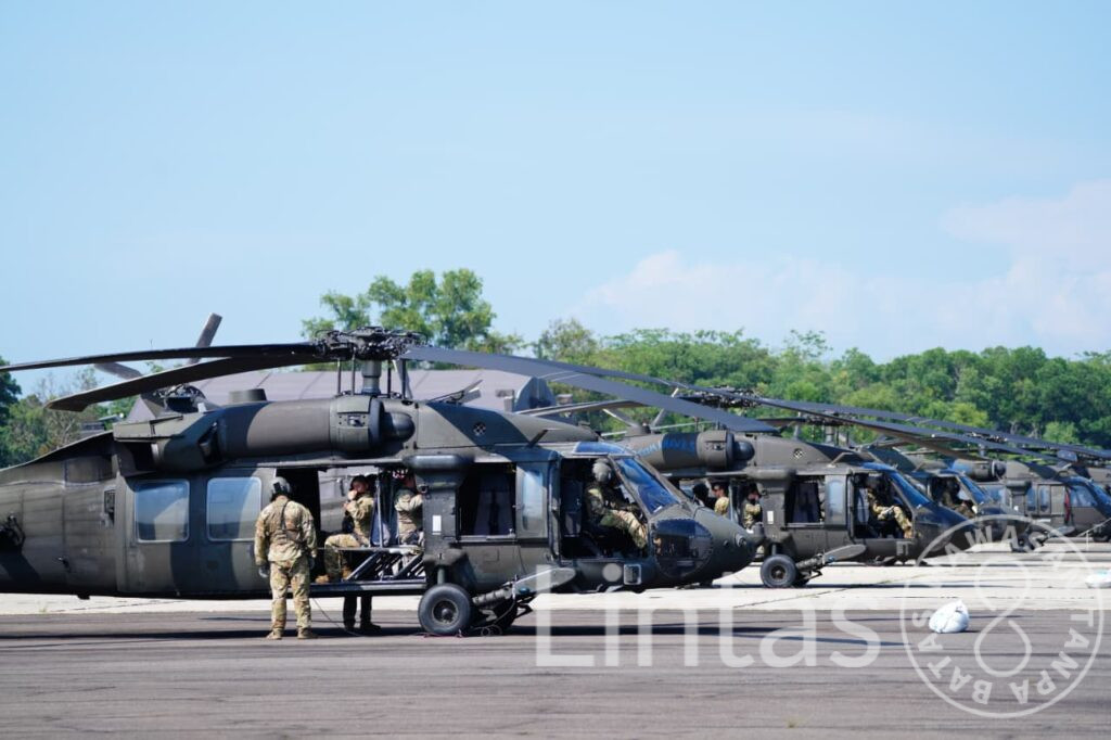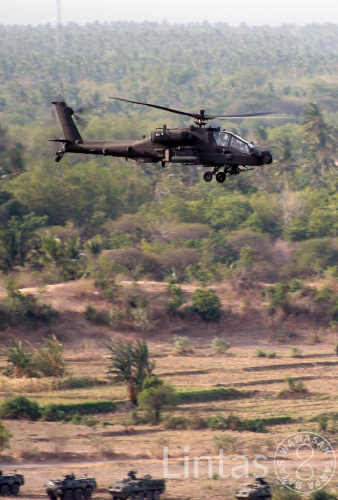 Selain personel, TNI AD juga menurunkan alutsista modern untuk mendukung latihan ini. “Di antaranya satu seksi Armed Roket yang terdiri dari dua unit peluncur roket MLRS Astros lengkap dengan lima kendaraan kesistemannya, serta tujuh unit helikopter yang terdiri dari dua unit Apache AH-64, tiga unit Bell 412, satu unit Fennec AS 550, dan satu unit Mi-17V5. Selain itu, digunakan pula berbagai senjata infanteri termasuk senapan serbu Caracal, pistol G2 Combat, senapan SO Minimi, serta mortir kaliber 60 mm dan 81 mm,” jelas Kadispenad.