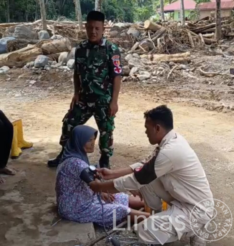 Tim Bantuan Kesehatan Pusat Kesehatan TNI Angkatan Darat (Puskesad) yang tergabung dalam Satgas Penanggulangan Bencana Alam Sumatra di Provinsi Sumatera Utara melaksanakan kegiatan pelayanan dan pengobatan kesehatan bagi masyarakat terdampak bencana alam di Desa Bonan Dolok, Kecamatan Sitahuis, Kabupaten Tapanuli Utara, Provinsi Sumatera Utara.