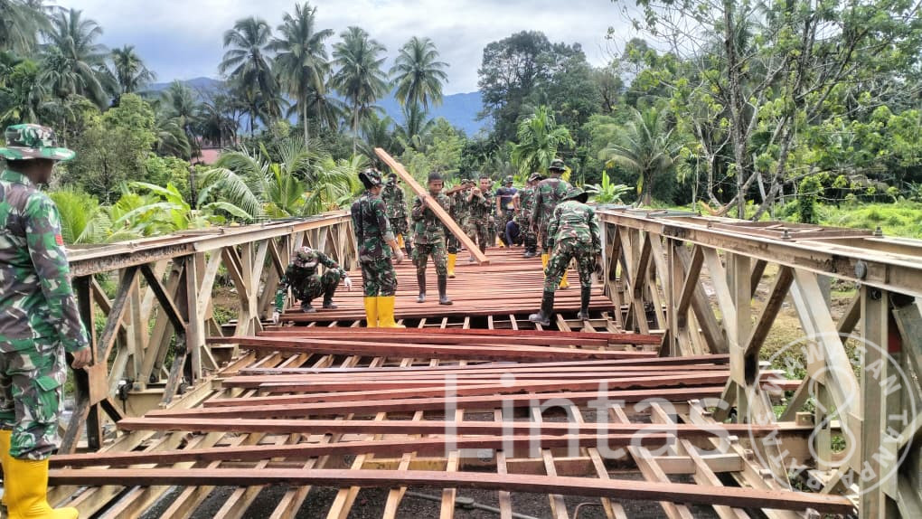 SUMBAR, tniad.mil.id — TNI Angkatan Darat terus melanjutkan pembangunan jembatan darurat untuk memulihkan akses transportasi dan aktivitas masyarakat yang terputus akibat banjir bandang dan tanah longsor di sejumlah wilayah Sumatera Barat. Sebanyak tujuh jembatan Bailey dan lima jembatan Armco direncanakan dibangun di beberapa kabupaten terdampak guna mempercepat pemulihan pascabencana.