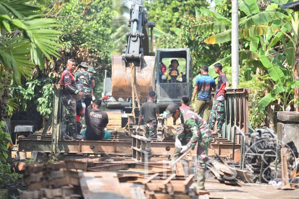Bireuen, tniad.mil.id — TNI Angkatan Darat melalui Satuan Zeni Kodam Iskandar Muda (Zidam IM) terus mempercepat pemasangan Jembatan Bailey di Desa Cot Bada, Kecamatan Jeumpa, Kabupaten Bireuen, sebagai upaya memulihkan akses transportasi masyarakat yang terputus akibat banjir dan tanah longsor di wilayah Provinsi Aceh, Jumat (19/12/2025).