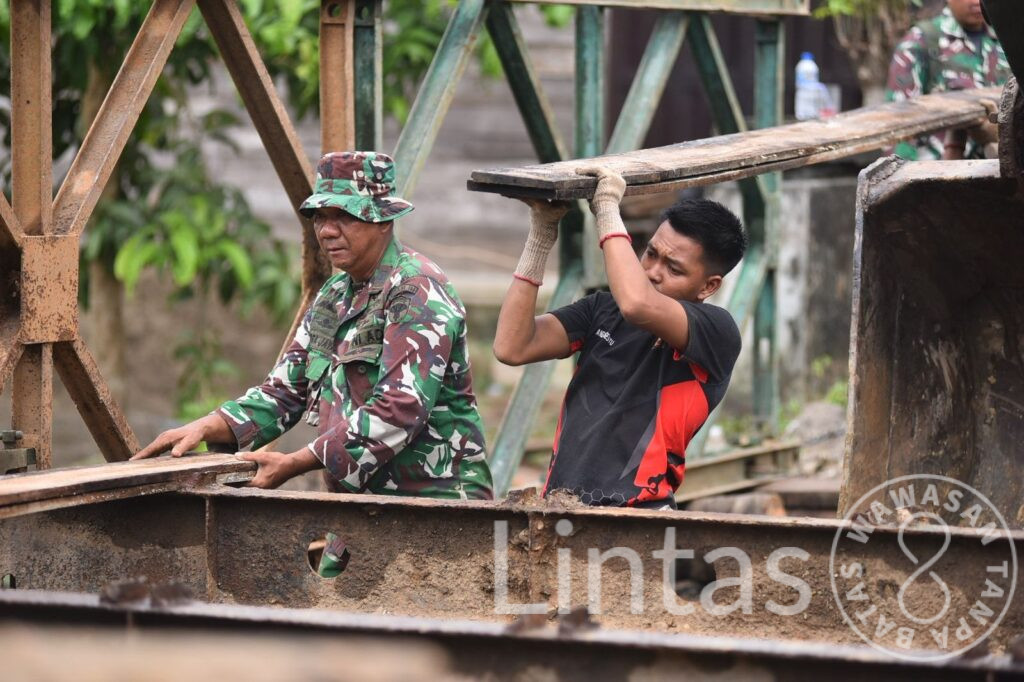 Sejak pagi hingga malam hari, personel Zidam IM bekerja tanpa lelah di lokasi pembangunan jembatan. Seluruh tahapan pengerjaan dilaksanakan secara terukur dan berkesinambungan, mulai dari penyiapan dan penguatan pondasi, perakitan rangka, hingga pemasangan struktur utama Jembatan Bailey. Percepatan dilakukan agar jembatan dapat segera difungsikan dan dimanfaatkan oleh masyarakat dalam waktu dekat.