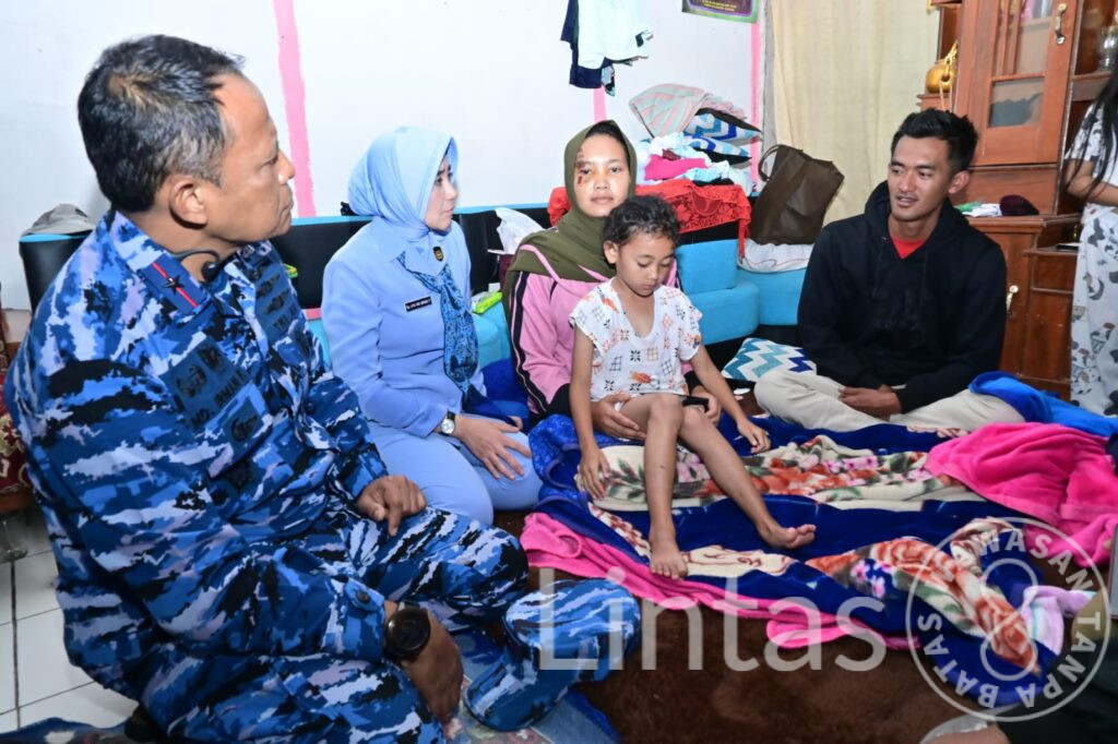 Selain menyerahkan bantuan, Danlanud beserta rombongan juga menyempatkan diri mengunjungi salah satu keluarga yang selamat dari musibah tanah longsor sebagai bentuk empati dan kepedulian.