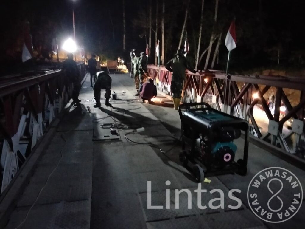 Berkat kerja keras, kekompakan, serta koordinasi yang baik di lapangan, proses perbaikan berhasil diselesaikan pada hari yang sama, tepatnya pada pukul 23.30 WIB. Setelah melalui tahap pengecekan dan dipastikan aman, Jembatan Bailey Umah Besi kembali dapat difungsikan secara normal, sehingga arus lalu lintas kembali lancar dan aktivitas masyarakat dapat berjalan seperti sediakala.